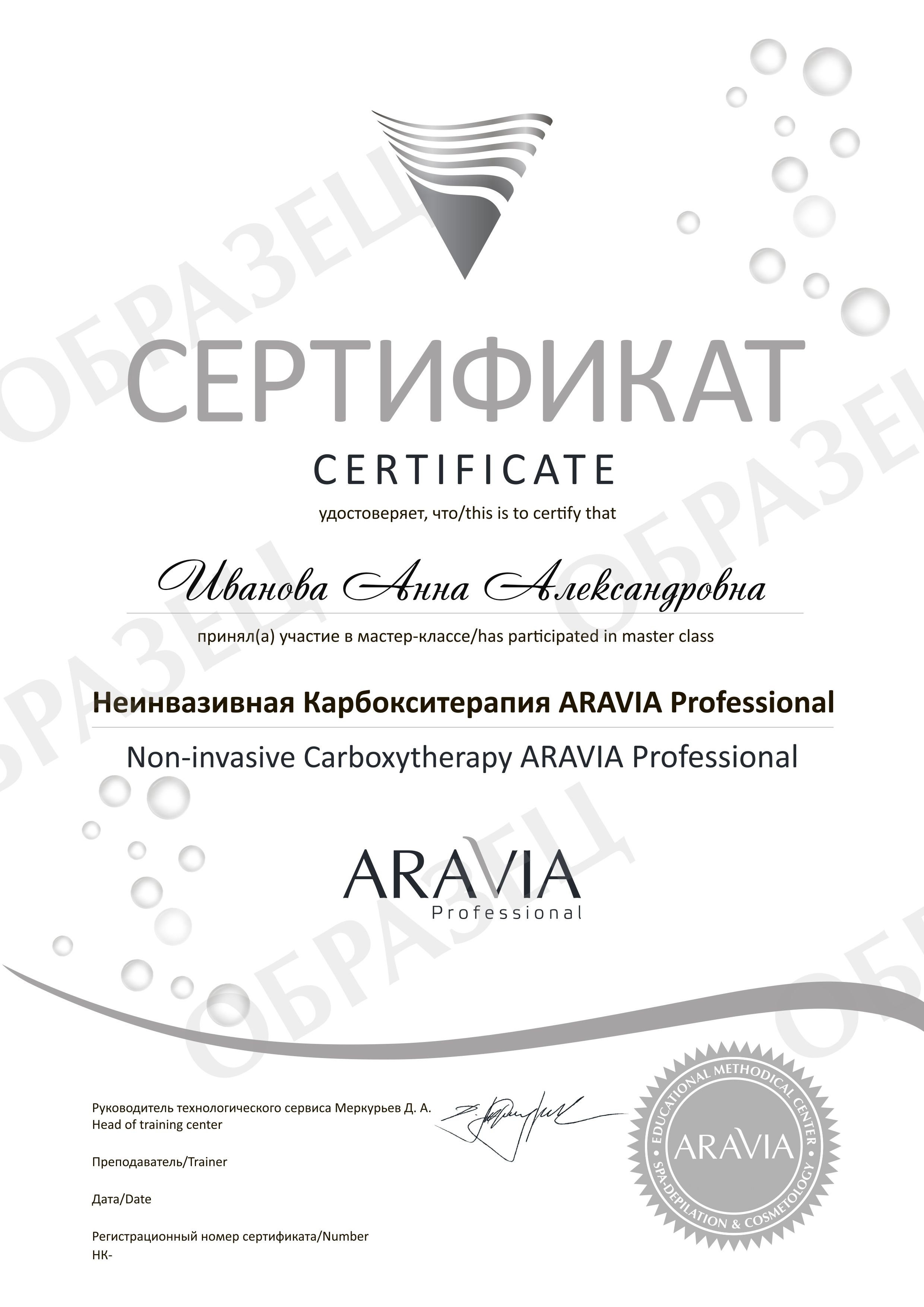 После прохождения мастер-класса участники получат именной сертификат о прохождении мастер-класса по теме «Неинвазивная Карбокситерапия ARAVIA Professional».